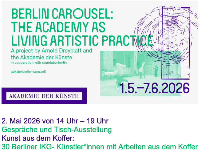 Akademie der Künste Hanseatenweg 10, 10557 Berlin adk.de/berlin-karussell (Programm online ab 27.4.)