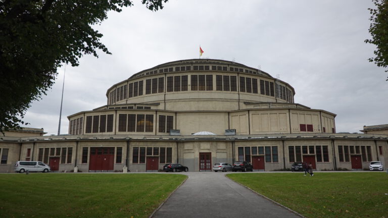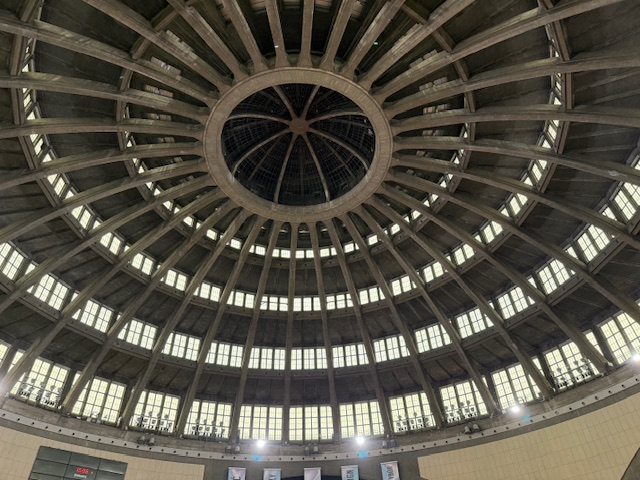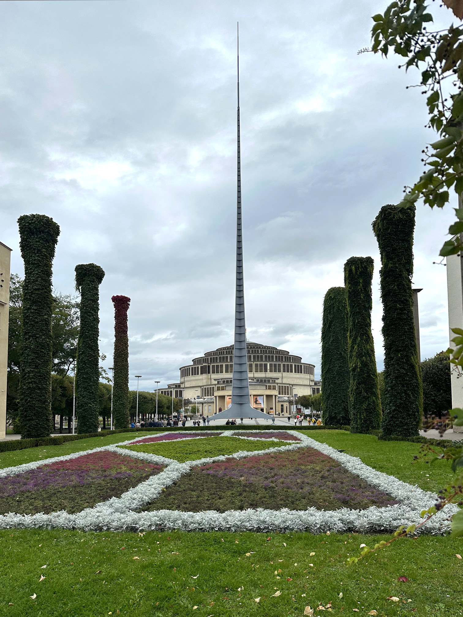 Anschließend wurde in kleinen Gruppen, die berühmte Jahrhunderthalle, ein UNESCO-Weltkulturerbe und Wahrzeichen, das Wroclaw zu einem Mekka der Moderne machte, besucht. In der Veranstaltungshalle aus Stahlbeton von den Architekten Max Berg und Günther Trauer fand gerade eine Verkaufsmesse statt. Besonders eindrücklich ist das riesige Dach mit einer Spannweite von 65 Metern, größer und weiter als die des Pantheons in Rom.