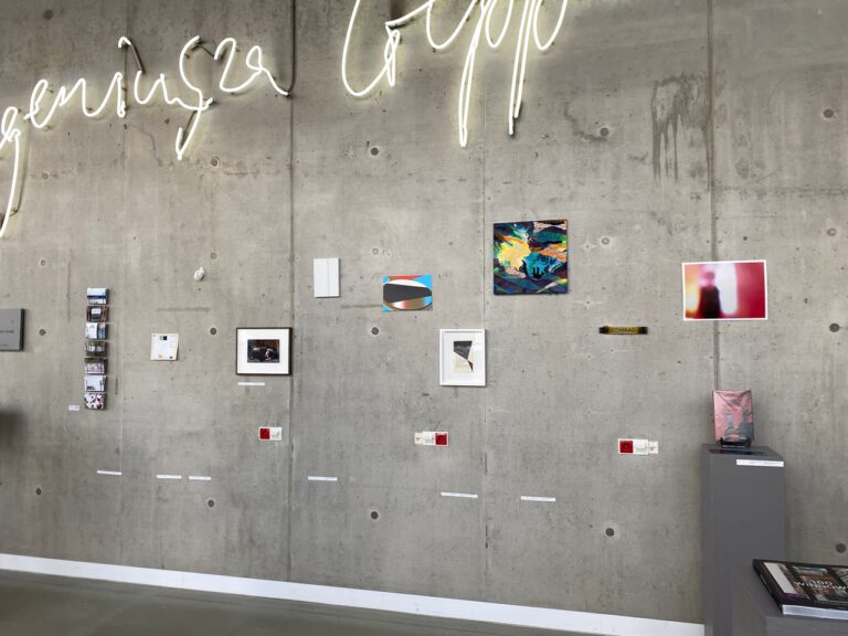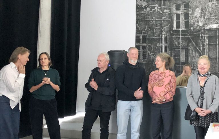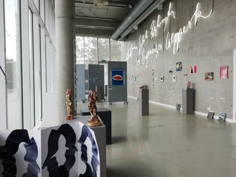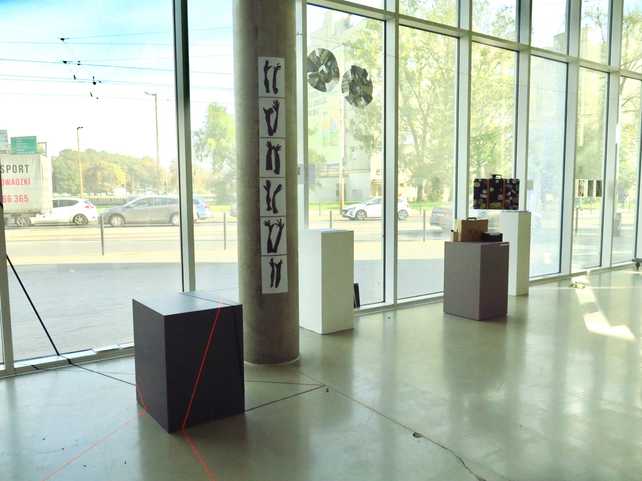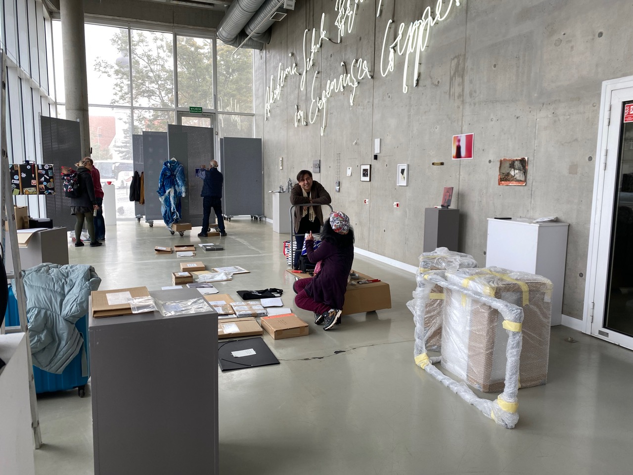 Vorab hatten wir unsere Arbeiten aus dem Koffer bei Tomasz Opania abgegeben, der die Hängung in der Ausstellungshalle der Akademie mit seinem Team vornahm. In diesem Jahr ist die Ausstellung zum ersten Mal über einen längeren Zeitraum zu sehen: vom 4. bis zum 20. Oktober. Danach werden die Arbeiten im mitgebrachten, adressierten Briefumschlag an die Künstlerinnen* zurückgeschickt.