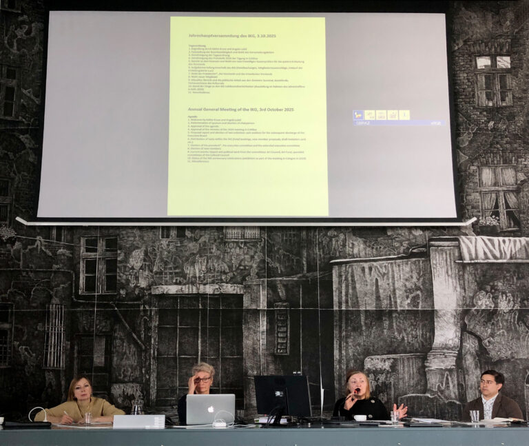 Unsere Jahresversammlung fand am Samstag von 10 Uhr bis 14:10 Uhr im Auditorium der Eugeniusz Geppert Academy of Art and Design statt. Käthe Kruse eröffnete die Versammlung und berichtete gemeinsam mit Angela Lubic über ihre Arbeit im vergangenen Jahr. In diesem Jahr wurde Käthe Kruse als Präsidentin für zwei weitere Jahre wiedergewählt. Ebenso wurden An Seebach und Valerian Maly als Vorstand bestätigt. Auch der Erweiterte Vorstand wurde für zwei Jahre gewählt. Statt Michael Kurzwelly, dem die Präsidentin für seine Arbeit dankte, ist nun Claudia Chaseling mit im vertrauten Team.
