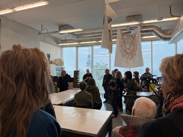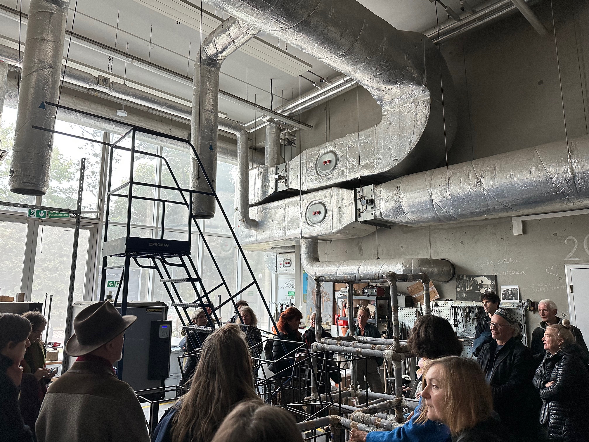 Pünktlich um 10.30 Uhr am 3. Oktober führte Aleksandra Zaczek, Leiterin der Abteilung für internationale Beziehungen und Öffentlichkeitsarbeit, kenntnisreich durch das neue und alte Gebäude der Eugeniusz Geppert Academy of Art and Design. Besonders interessant waren die Besuche in den Werkstätten, die im modernen Neubau zum großen Teil von den oberen Fluren eingesehen werden konnten. Dankenswerterweise hat Sofi Zezmer auf wunderbar lockere Art und Weise übersetzt.