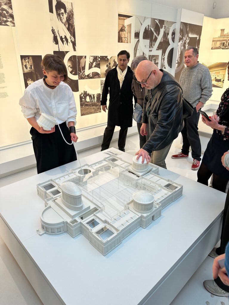 Zum Abschluss unserer Tagung besichtigten wir am Sonntagvormittag den Vier-Kuppel-Pavillon von Hans Poelzig, der seit 2006 ebenfalls zum UNESCO-Weltkulturerbe zählt. Wir bekamen eine zweistündige intensive Führung durch die Sammlung moderner polnischer Kunst, die wieder von Sofi Zezmer übersetzt wurde. Hier verabschiedeten Angela Lubic und Käthe Kruse Tomasz Opania und dankten ihm sehr herzlich für die Organisation unseres Jahrestreffens und für seine Großzügigkeit.